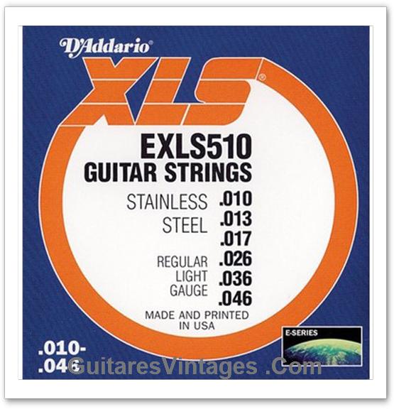 Cordes guitares électriques D'Addario Stainless Steel 10-46 EXLS510 new old stock années 2000' | Jeu de cordes D'Addario USA 10-13-16-26-36-46 Ancien stock neuf années 2000' Bien meilleure qualité par rapport au cordes d'aujourd'hui Stainless Steel Made in USA