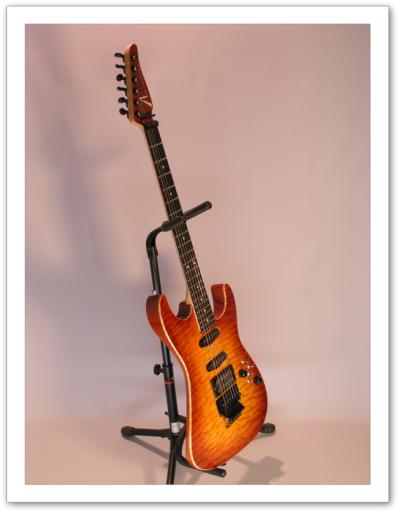 - Dos et Manche acajou, touche palissandre avec incrustation trapèze.